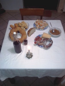 Durante la settimana dei morti la tradizione vuole che le anime dei defunti ritornano nei luoghi dei loro cari per visitarli. Per accoglierli nel migliore dei modi durante la settimana dei morti le case vengono tenute particolarmente pulite e ordinate e con la tavola imbandita di cibo affinché l’anima in visita possa ristorarsi (nella foto). Nei giorni che precedono l’inizio della settimana dei morti ogni famiglia prepara dolci tradizionali e grano bollito che vengono distribuiti nella gjitonja (vicinato) e tra i familiari affinché tutti possano partecipare al ricordo dei propri defunti. Il grano bollito che simboleggia la rinascita: sepolto sotto la terra prima marcisce per poi risorgere rigogliosamente, così l’uomo per risorgere alla luce di Cristo deve prima passare per l’esperienza della morte.